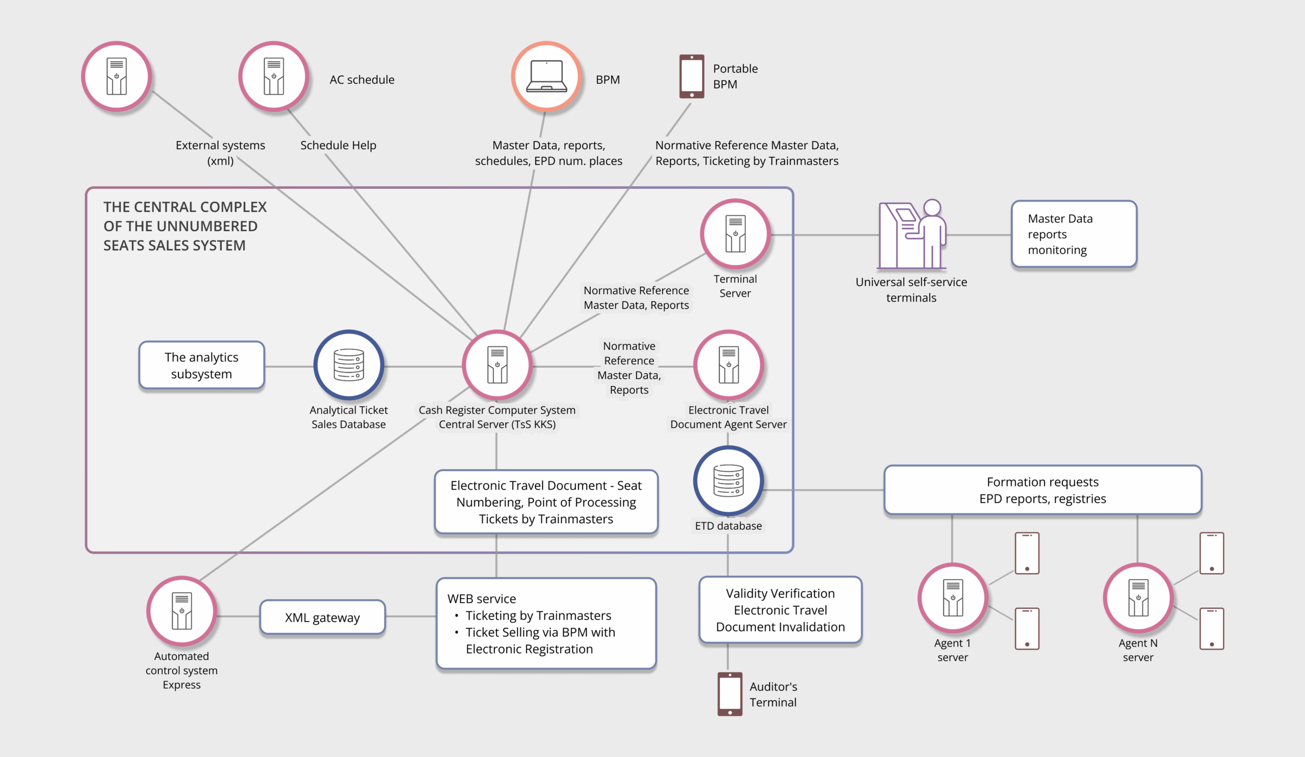 Development, implementation, maintenance, and upgrade of a central ticket sales accounting server, to include stationary and portable ticket printing machines (BPM) and self-service terminals (TPS)