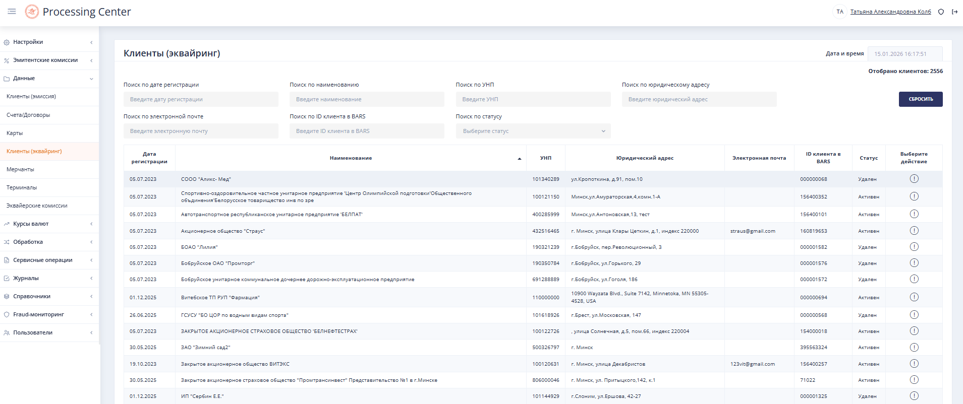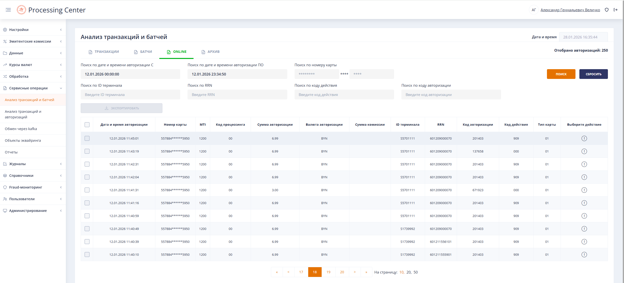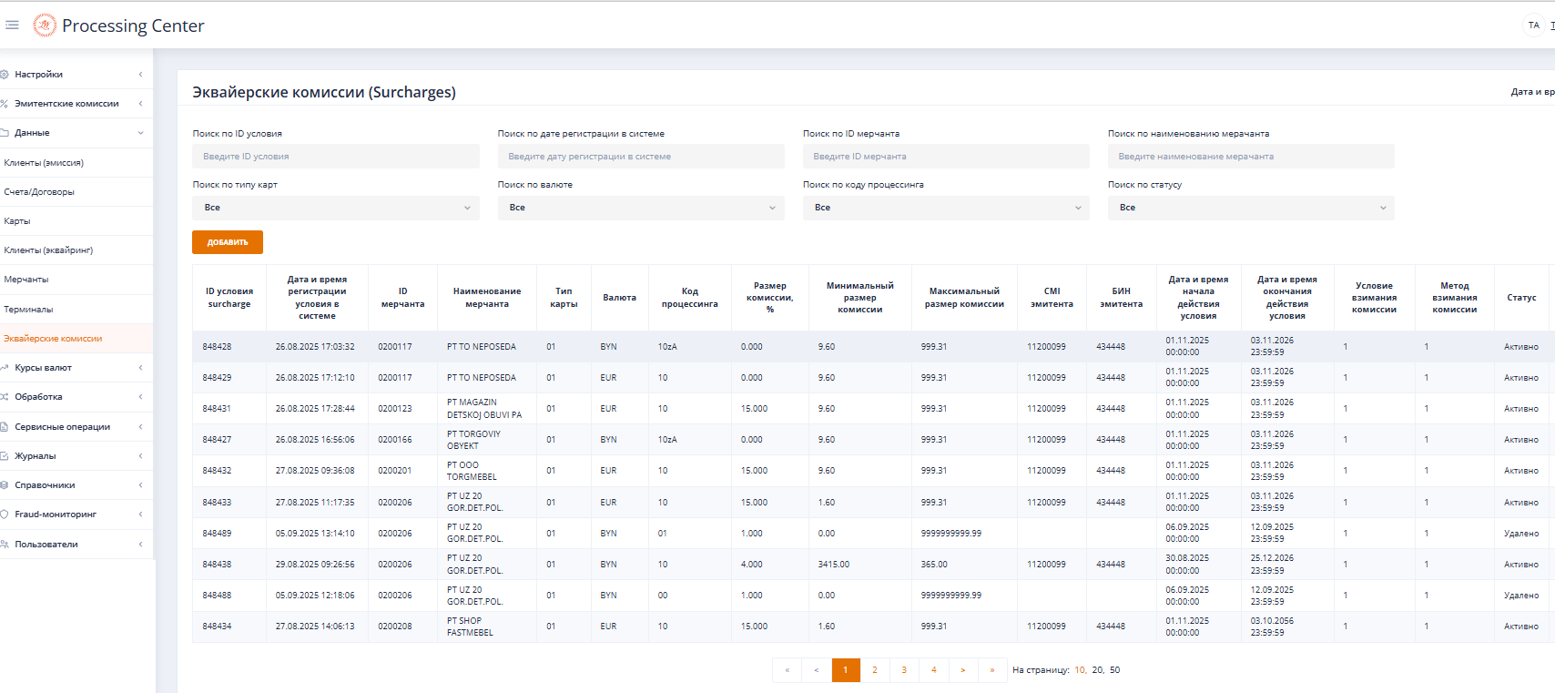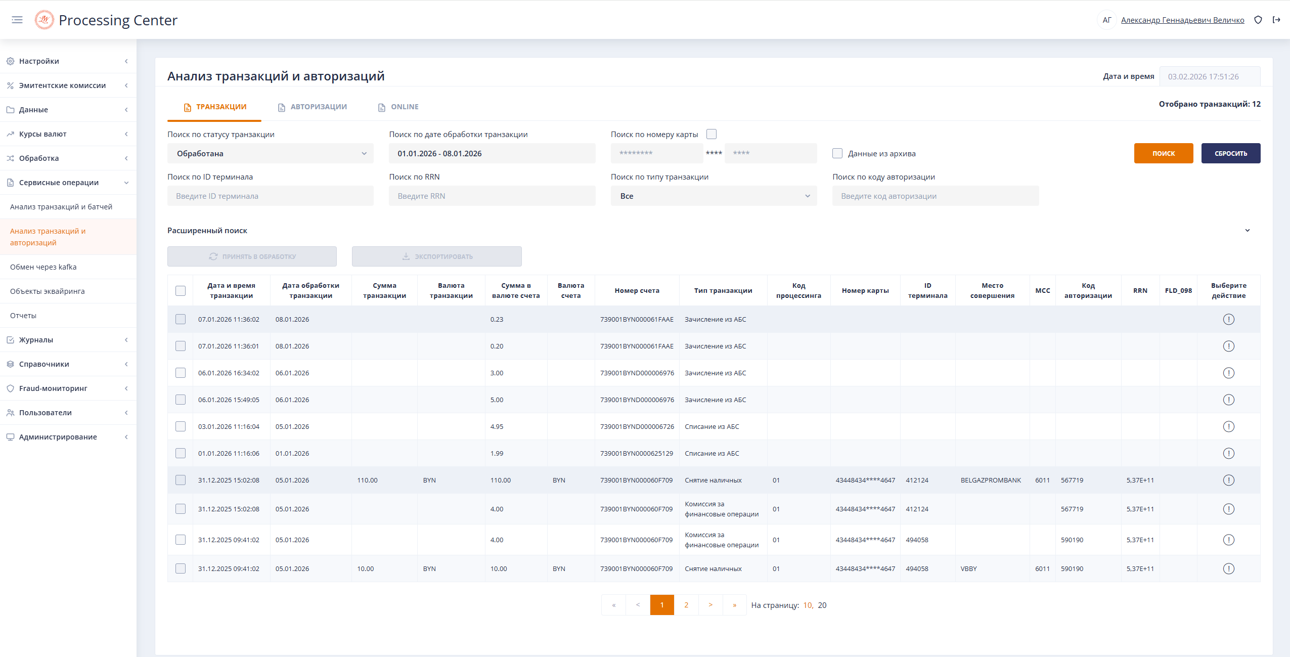 Полный цикл обработки эквайерских транзакций с автоматической подготовкой данных для клиринга и последующих расчетов. Анализ, управление транзакциями и батчами (создание реверсалов, корректировки)