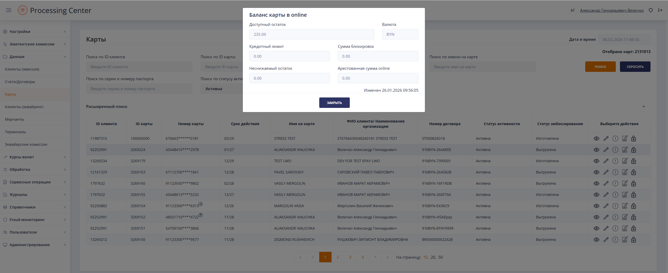 Выполнение онлайн-блокировки эмитентских комиссий, включая комиссии с аккумулированием. Обеспечение непрерывного онлайн-взаимодействия с Back Office модулями для получения актуальных данных по клиентам и счетам