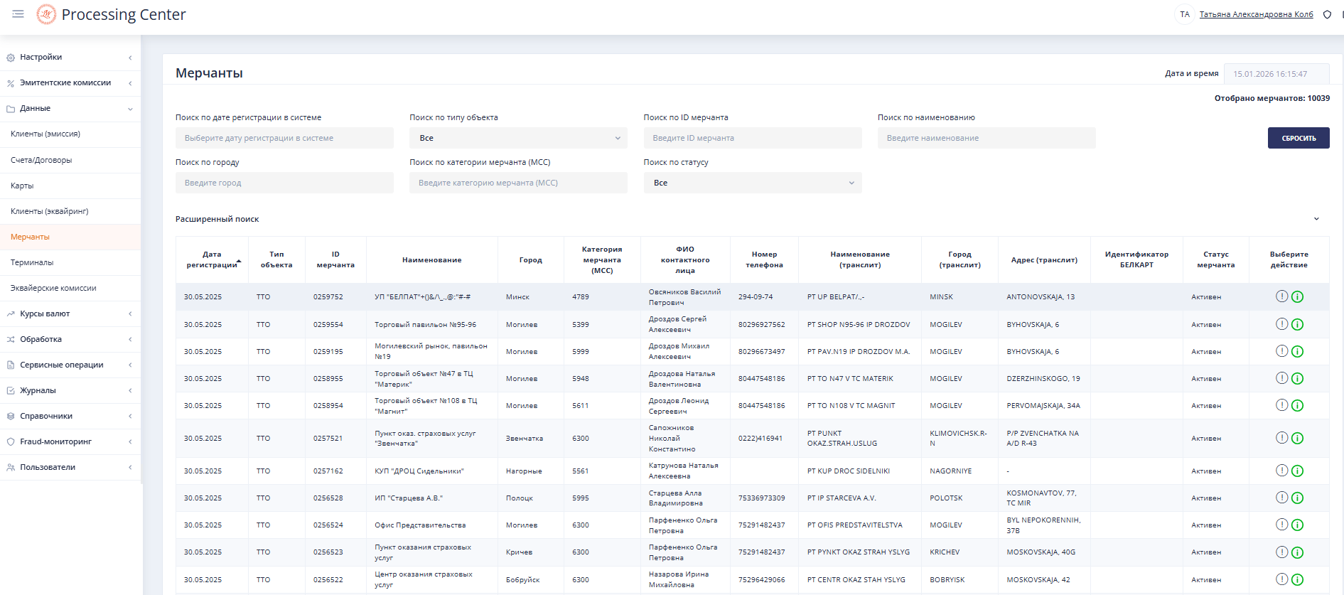 Онлайн взаимодействие с Back Office эквайринга для обработки финансовых операций, что обеспечивает актуальность данных и оперативность расчетов с мерчантами