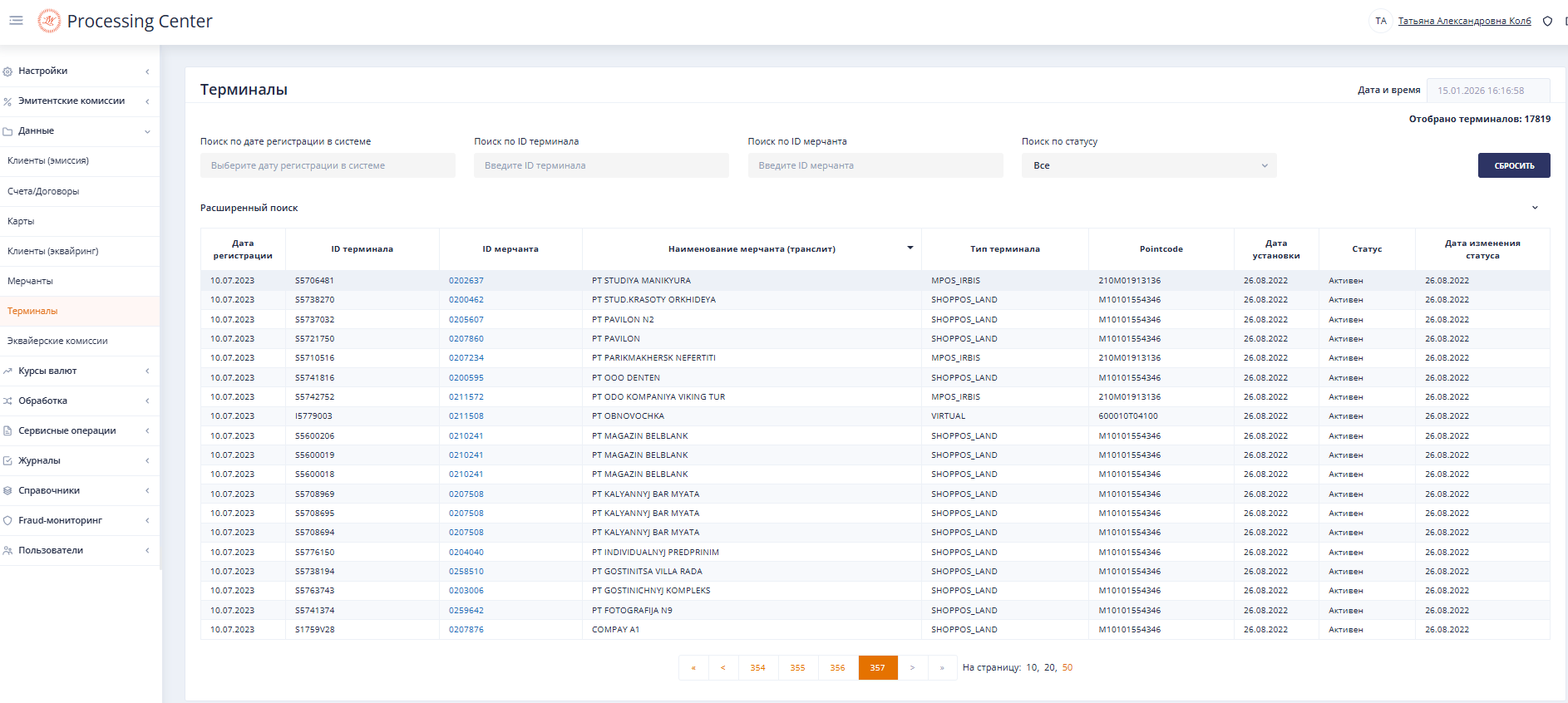 Автоматическая загрузка и синхронизация актуальных данных о торговых точках и терминалах из мастер-системы. Динамическое ведение и применение эквайерских комиссий в режиме реального времени