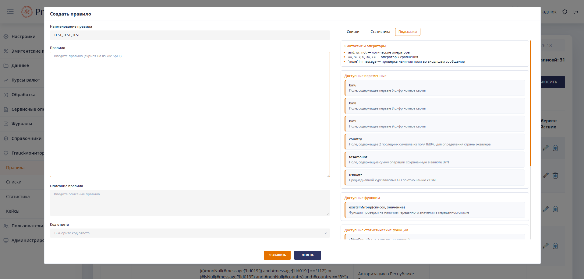 Программный модуль в составе Front Office процессингового центра, который автоматизирует и контролирует процесс выявления, анализа и предотвращения мошеннических операций в реальном времени