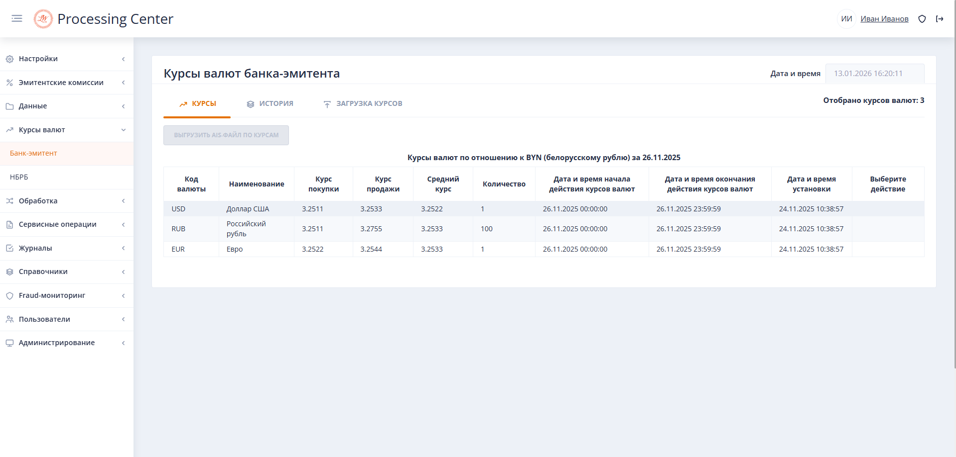 Загрузка и управление курсами валют банка-эмитента с передачей в Front Office для обеспечения блокировки