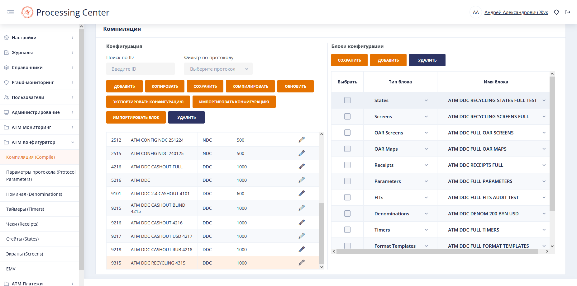 • Создание, редактирование и компиляция конфигураций для различных моделей банкоматов